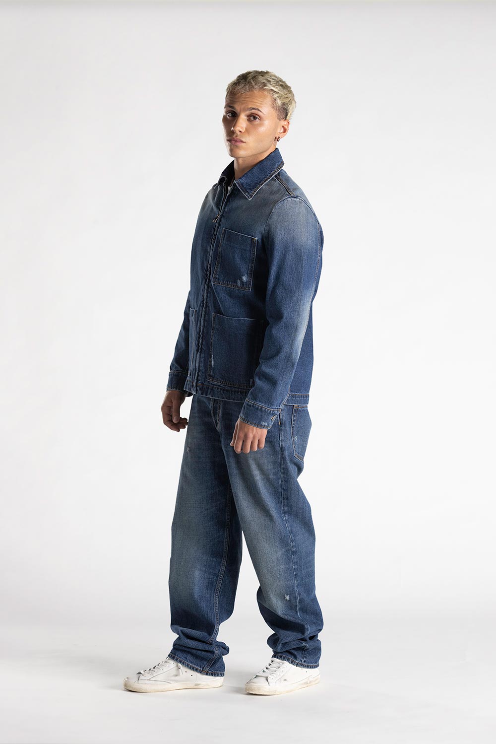 Questa giacca in denim 100% cotone rappresenta una reinterpretazione contemporanea di un grande classico. Il lavaggio scuro, unito ai dettagli di usura studiati e distribuiti in punti strategici, dona al capo un carattere autentico e vissuto, senza perdere in raffinatezza.
